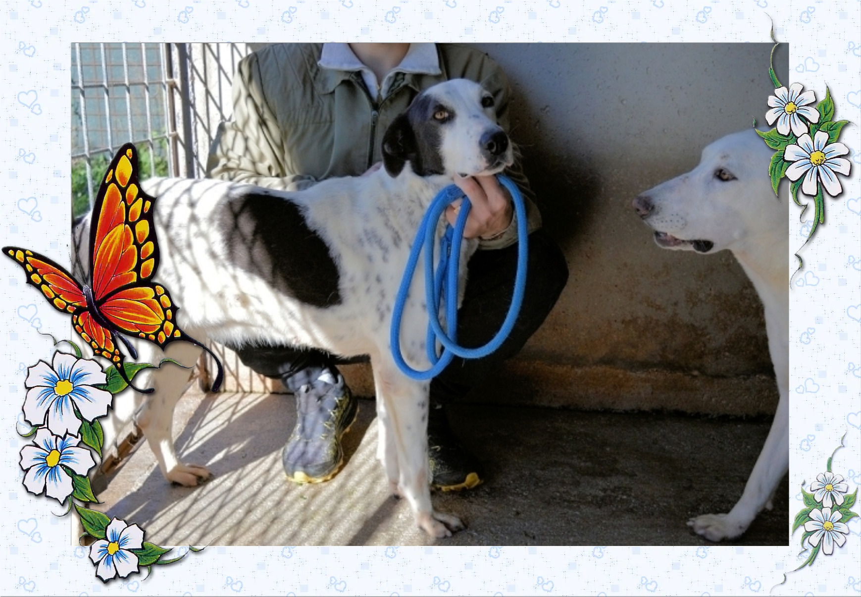 Ich bin ein knapp siebenjähriger, beeindruckender Hundemann und hause seit nunmehr fast drei Jahren in diesem schrecklichen Gefängnis. Hier gibt es nur Gitter, Beton, Schmutz und viele Hunderte hoffnungsloser Hunde. Uns bleibt nur eine winzige Chance, diesen furchtbaren Ort irgendwann lebend zu verlassen, indem wir uns von unserer besten Seite zu zeigen, wenn die Tierschützer mit den Fotoapparaten uns ein., zweimal im Jahr für ein paar Minütchen besuchen dürfen.