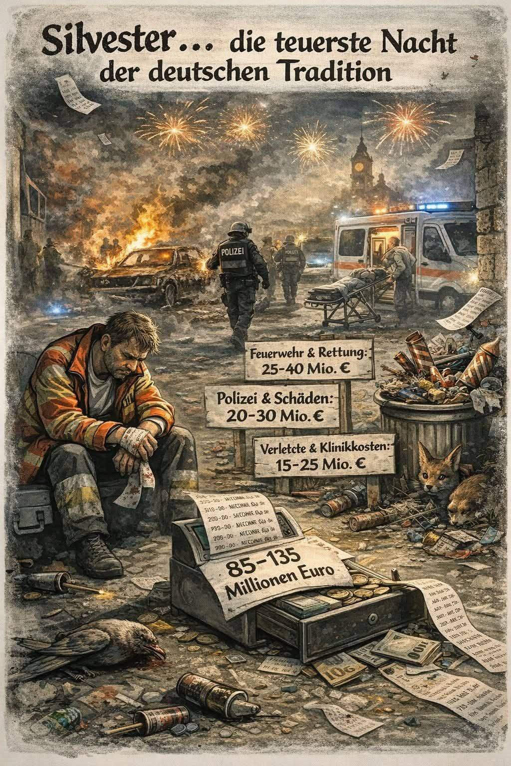 Da wir beim Thema sind: Über 200 Millionen Euro werden allein die Deutschen in dieser Silvesternacht verpulvern. Ich will gar nicht davon reden, was man mit dem Geld an Gutem tun könnte. Aber überall hörst du sie jammern, wie teuer das Leben geworden ist, dass sie ihre Miete nicht mehr zahlen, ihre Kinder nicht mehr gesund ernähren können, auch der Kaffee ist unerschwinglich geworden. Und hier haben sie auf einmal genug, um es in der Luft verpuffen zu lassen. Mir scheint, vielen geht es immer noch zu gut.